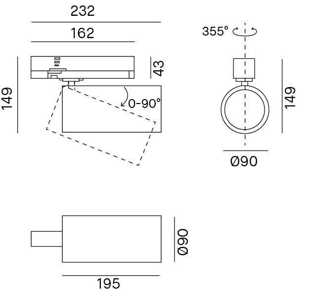 Proiettore LED multipotenza orientabile per installazione su binario eurostandard. LED SAMSUNG COB G3. Lifetime 50.000h (L80B10). Corpo verniciato a polvere, bianco o nero opaco. Lenti in PMMA alta efficienza intercambiabili e accessori da ordinare su richiesta.
