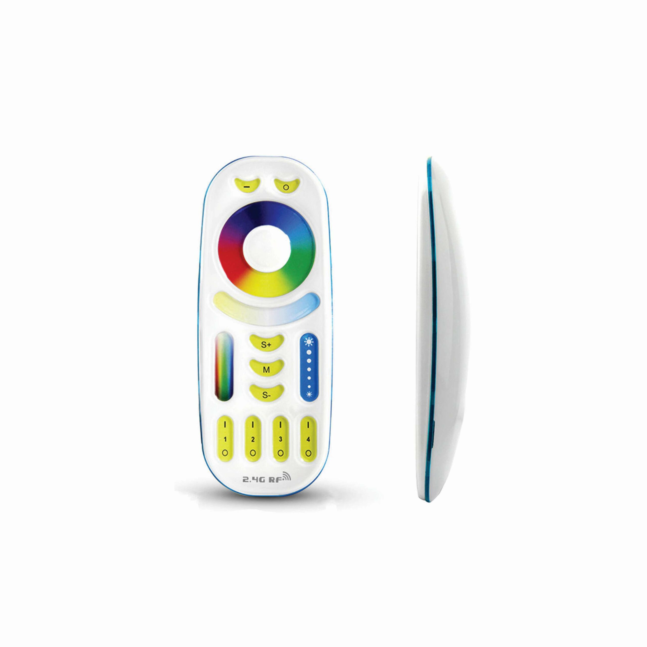 Possibilità di controllare sistemi in RGB, RGBW, bianco dinamico, dim to warm e dimmerazione monocolore. Un telecomando può controllare fino a 4 zone