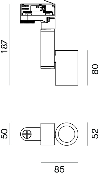 Proiettore LED orientabile con adattatore su binario eurostandard. R50: LED BRIDGELUX COB. R51/R52: LED CREE COB. Lifetime 50.000h (L70B20). Corpo in