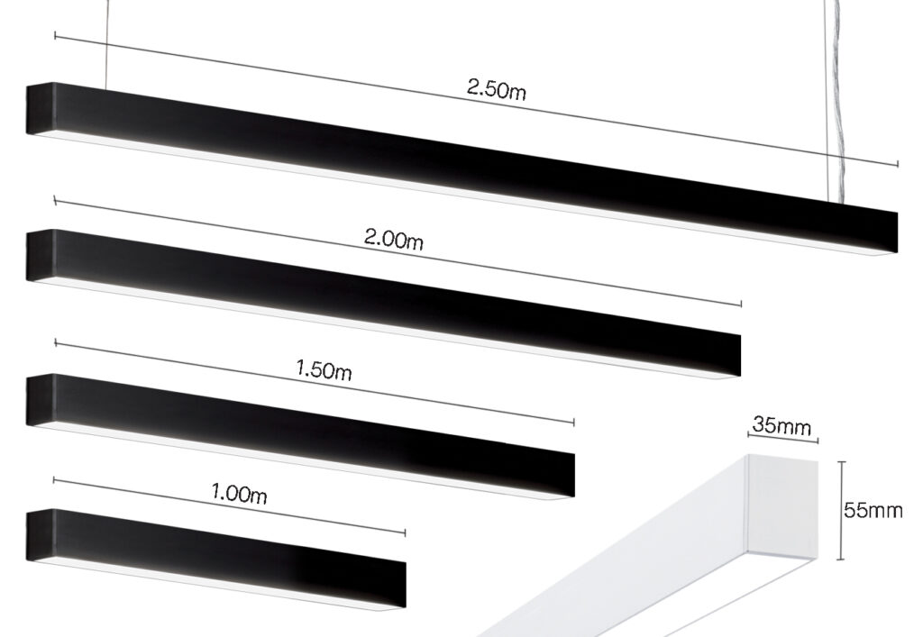 Il Way35 è un apparecchio lineare disponibile in 4 lunghezze, 1m – 1.5m – 2m – 2.5m; ciascuna trafila può essere installata singolarmente o in fila continua,